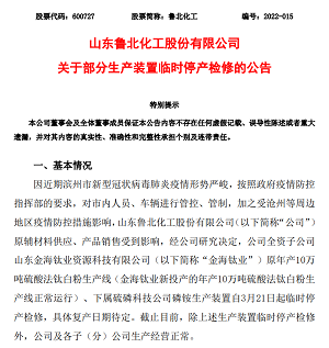 近期,受政府疫情防控要求、下游主要企業(yè)停產(chǎn)限產(chǎn)以及跨地區(qū)物流受限等多方面因素的影響,沈陽化工股份有限公司(以下簡稱“公司”)將于2022年3月23日起臨時停產(chǎn)。